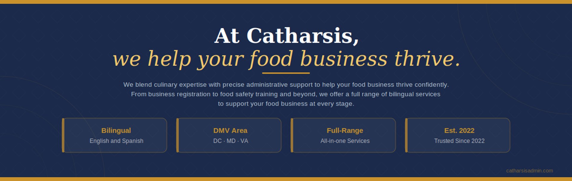 At Catharsis Admin Services, we provide comprehensive food safety and business support solutions tailored to the food service industry. Whether you're launching a new venture or optimizing existing operations, our expert team is here to guide you every step of the way.